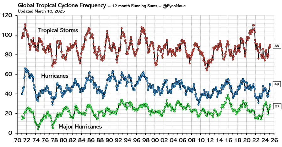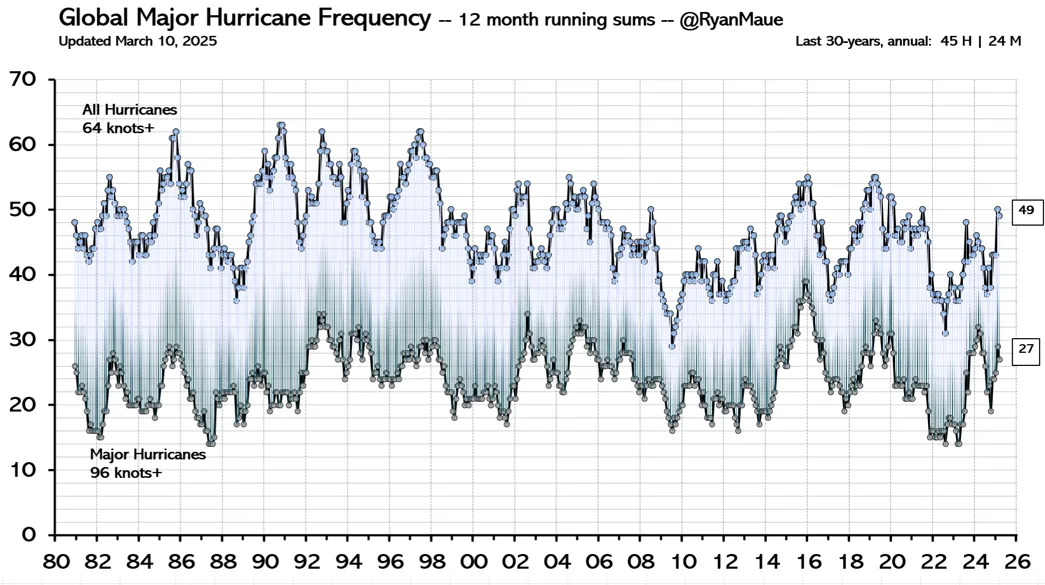"Motivated by a recent commentary in Nature on Atlantic hurricanes that was all opinion and no data, in advance of the official 2025 North Atlantic hurricane season I thought I'd do a post on hurricanes that was all data and no opinion."
