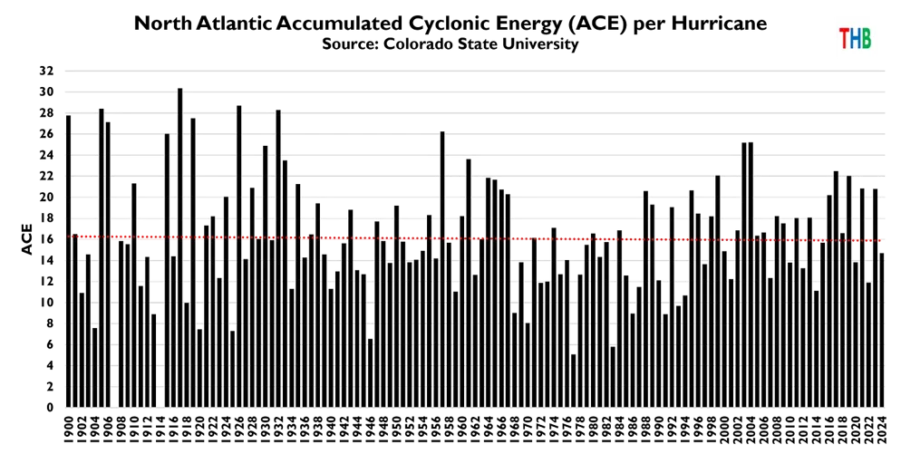 "A rich dataset offered by researcher Roger Pielke Jr. shows that there's been no upward trend in Atlantic hurricane activity since 1900, and global cyclonic energy per hurricane has been stable since 1980."
